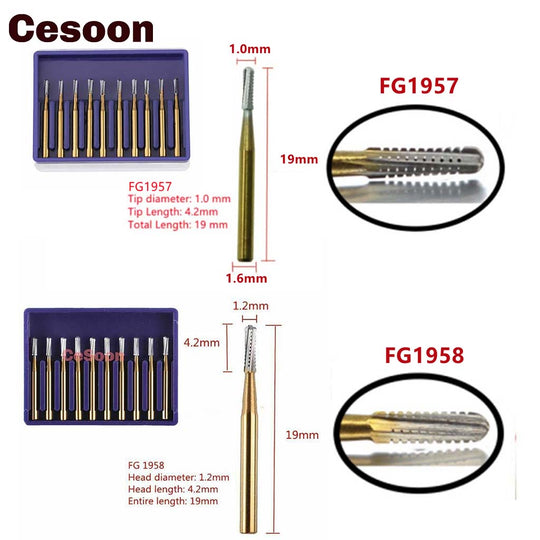 Fresas de carburo para retirar prótesis fija 10Pcs/Pack FG1957/FG1958 19mm